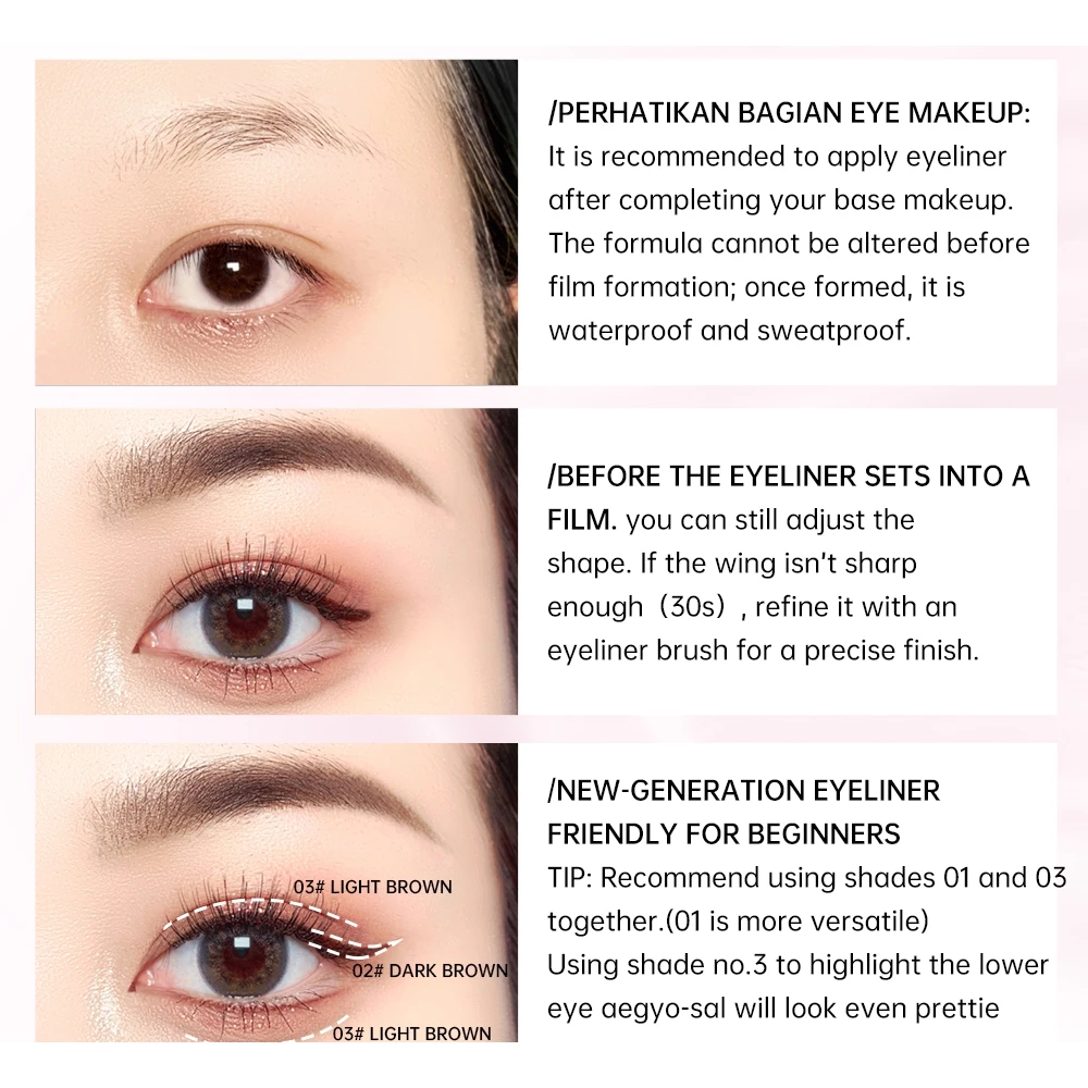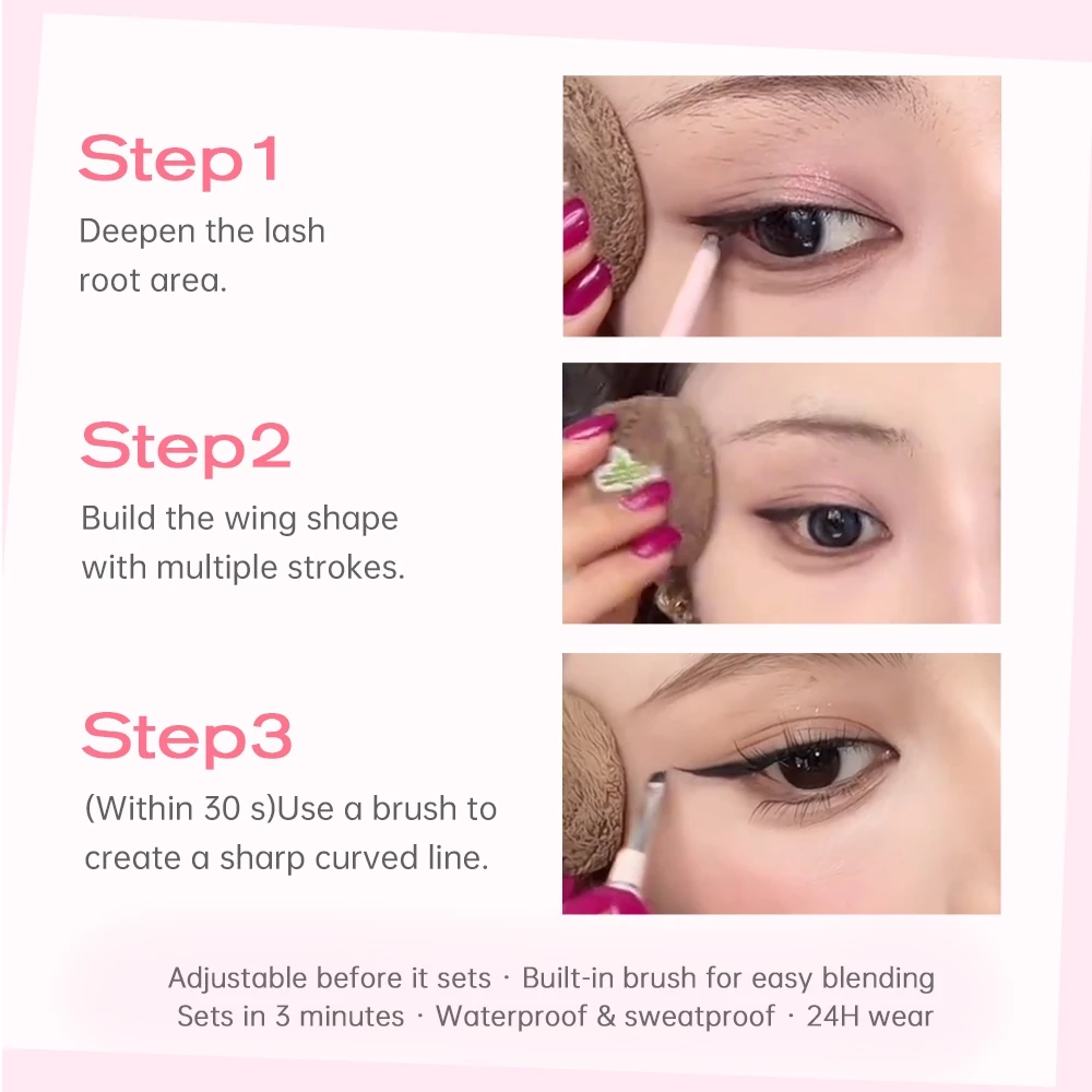Waterproof After 30-Second Film Formation: Use the brush to adjust the shape and define the tail within 30 seconds.